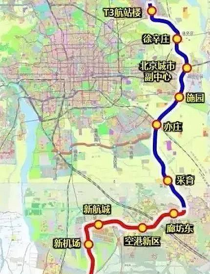 根据此前京安城际铁路有限公司的招标公告,新建城际铁路联络线位于北京市顺义区、通州区、亦庄开发区、大兴区以及河北省廊坊市境内,北起南法信站,经首都机场T3航站楼,向南进入通州核心区,经亦庄向南进入河北省廊坊市,再向西到达新机场。