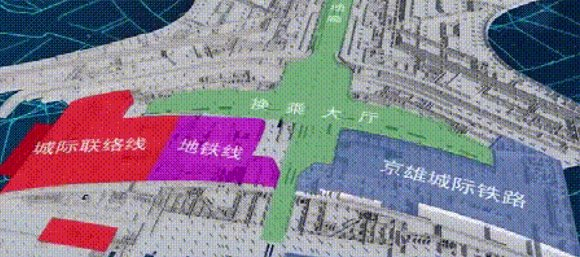 京雄城际铁路与城际联络线、机场快轨线构成轨道交通站厅层,在地下一层换乘通廊可实现相互换乘,并进入站台乘车。
