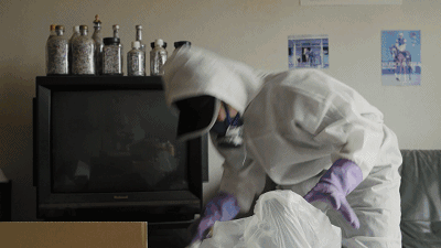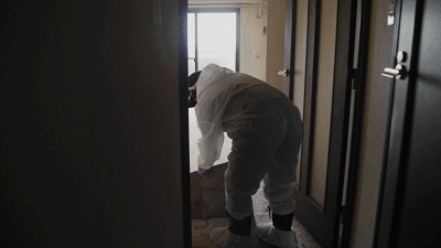 Shiori:拍摄这些故事时的心情是复杂的。特别是在影片里的一个案例——没有水,没有天然气,没有电,死者一个人生活了很长时间。他有一个哥哥,但是他没有联系哥哥寻求帮助,所以当我们发现他的尸体时,看到了他写下的最后一封信,他向这栋建筑的管理员寻求帮助——这是和他最亲近的可以寻求帮助的人了。但是那封信从来没有递出公寓。