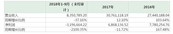 中科正方2016年、2017年以及2018年前三季度的净利润分别是778.02万元,686.8万元、-319.6万元。净利润2018年前三季度大幅下滑,并由盈转亏。
