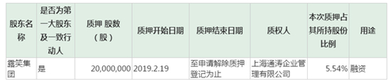 公司控股股东露笑集团持有公司股份3.61亿股,占公司总股本的32.77%,露笑集团累计质押的公司股份数为3.28亿股,占其持有股份数的90.82%,占公司总股本的29.76%。