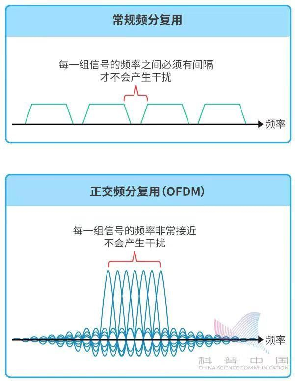 这叫作正交频分复用(OFDM)。