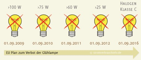 2009年,欧盟立法规定,禁售所有能耗等级C以下的100瓦以上白炽灯。2012年,禁售标准变成了能耗等级C的25瓦白炽灯,到了2016年,禁售了所有能耗等级B以下的白炽灯。