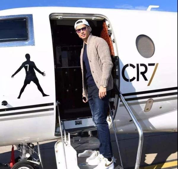 C罗和自己的私人飞机。