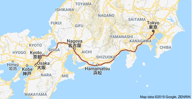 东海道新干线图,来自谷歌地图