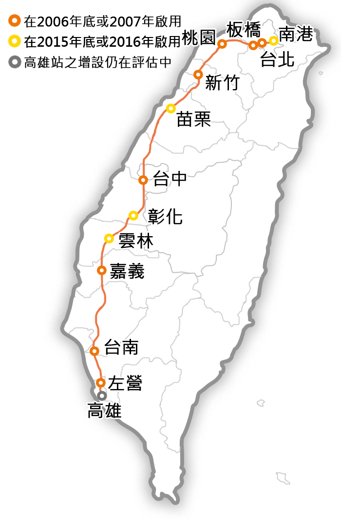 和环岛、照顾到台湾全岛各县市的台铁不同,台湾高铁只在台湾西部地区运营,图片来自台湾高铁