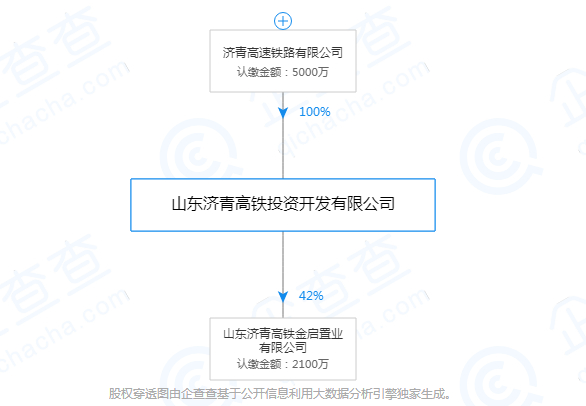 在企查查平台上,我们查询到京沪高铁公司尚未有对外投资的记录,但济青高速铁路有限公司已经间接持有一家物业公司42%的股权。