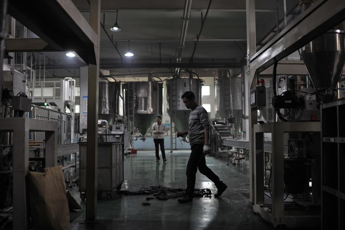 △ 2月26日,东莞市厚街金胜鞋材加工厂,这两名来自四川的工人已经在厂里工作超过十年。