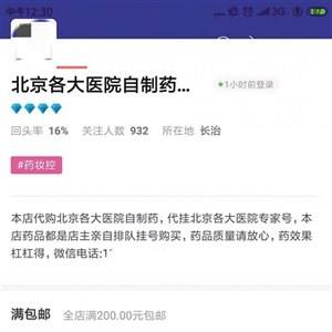 微商能在微店、微信朋友圈或微博等平台售卖医院自制剂吗?新京报记者拨打北京市食品药品监督管理部门投诉电话,工作人员表示该种行为违法。“院内制剂仅供本医疗机构使用,不能在微信或其他App平台售卖。”该工作人员解释称,若通过合法手续从医院取药,给自己或他人用都没问题,但不能倒卖。该工作人员提醒说,不能保证微商售卖的自制剂为正品,也有可能被更换为其他药品,“最好的办法就是自己去医院买。”