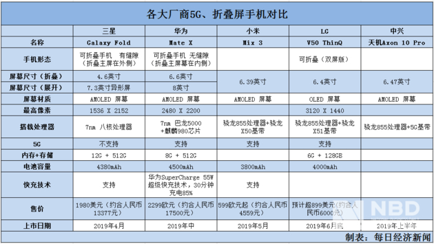 据目前市场披露的公开信息显示,包括三星、华为、小米、中兴、LG等诸多品牌都已发布了5G、折叠屏手机,那么从目前部分厂商披露的产品性能、参数方面对比,哪些品牌更具竞争力呢?