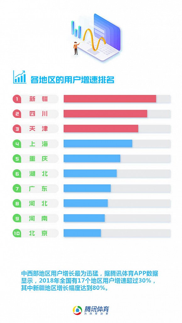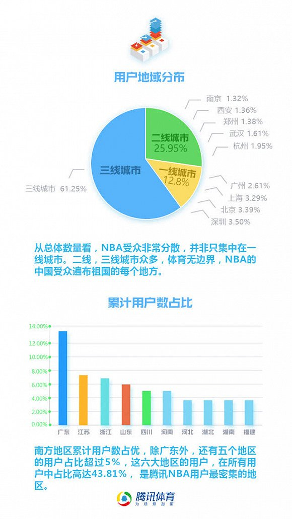 腾讯的NBA用户也呈现着南重北轻的格局。