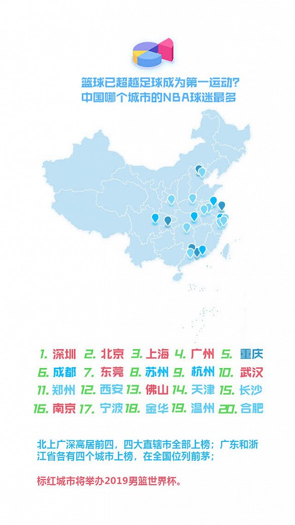 而承担了2019年男篮世界杯比赛任务的八个城市,全部位列2018年与NBA链接密度最高的20大城市之列。