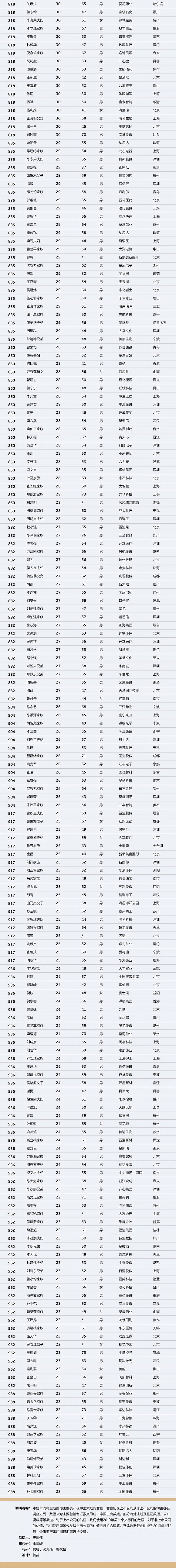 2019界面中国最富1000人榜2019界面中国地产富豪榜2019界面中国女富豪榜2019界面中国互联网富豪榜2019界面中国名人商业价值榜2019界面中国最佳名人代言商业品牌榜2019界面中国30岁以下最具潜力男艺人2019界面中国名人流量榜2019界面中国慈善企业家榜2019界面中国A股上市公司高管薪酬榜2019界面中国A股上市公司CEO薪酬榜2019界面中国A股上市公司董秘薪酬榜2019界面中国A股上市公司董事长薪酬榜2019界面中国上市公司最佳CEO榜2019界面中国上市公司最佳职业经理人榜2019界面中国最具创新力企业2019界面中国旅游城市榜2019界面中国城市旅游消费榜2019界面中国顶级风险投资人2019界面中国顶级风险投资机构2019界面中国城市创新竞争力排行榜2019界面中国最透明慈善基金会