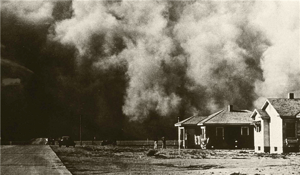 这场超级沙尘暴在美国的中部持续肆虐长达10年之久,整个中部大平原以及洛基山东麓都深受其害,重灾区的几个州常常在白天伸手不见五指,而被吹往半空的沙尘,甚至随着大气环流,飘到了东海岸及加拿大,正因如此,那十年被称为“肮脏的三十年代”。其中在1934年5月11日,俄克拉荷马西部的走廊区域出现了强对流天气,在一系列连锁反应之后,一场“完美风暴”诞生了:以俄克拉荷马西部为中心,出现了一个直径达一千多公里、高度约三公里的超级风暴带。据估计,在中部大平原上,有3.5亿吨的泥沙被抛向了空中,就连遥远的纽约、波士顿和亚特兰大,在白天也暗无天日。这一天被称为“黑色星期天”,而这场持续了三天的风暴被称为“1934年黑色风暴”。