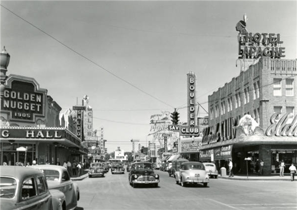 在胡佛大坝修筑的过程中,工人们经常到距离大坝三十公里外的一座小镇去娱乐休闲。这座小镇最初是1855年由摩门教徒建立的一座据点,深处沙漠,缺乏水源。1905年,它被铁路工人们发展成了一个小镇。但铁路修完之后,工人们大多都离去了,因为这里实在是太过干旱、又太过偏僻,甚至没有基本的电力保障,不适合居住。但对于修筑水坝的工人们来说,这里是方圆一百公里之内唯一的娱乐之所。他们的蜂拥而至,为这座小镇带来了电缆和水渠。