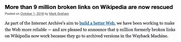正是在时光机的帮助下,维基百科上的几百万失效链接,都被重新指向了正确的历史版本。