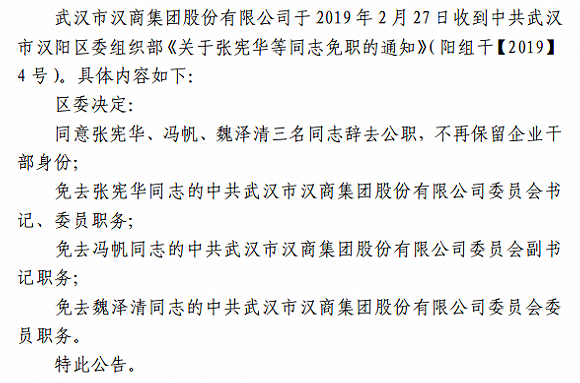 说起来,阎志及卓尔控股的名字最早在2012年9月12日汉商集团公告中,因举牌而亮相。之后的数年之间,阎志及卓尔控股还有多次举牌的经历,最终达到30%后而触发了要约收购,并一举将自己的持股比例推升至39.5%,完全锁死了汉阳国资继续增持的空间。而随着中共武汉市汉阳区委组织部发布通知,同意张宪华、冯帆、魏泽清辞去公职,不再保留企业干部身份;或也可以看做是在尘埃落定之后双方达成了共识吧。