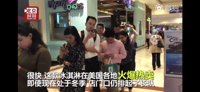 据报道,前不久为了庆祝中国春节,也为了勾起亚裔美国人的童年回忆,美国洛杉矶一家名为Wanderlust creamery的知名冰淇淋商,推出了大白兔奶糖口味的冰淇淋,并迅速成为“网红”,虽然正值冬季,但是店门口依然排起了长队。
