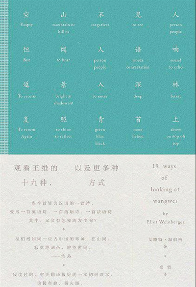 上世纪80年代,美国学者艾略特·温伯格的中国诗歌翻译研究《观看王维的十九种方式》问世。今年2月,这本书得以经由商务印书馆翻译引进。出乎我们意料的是,在非中文世界的诗歌评价体系中,王维的诗作受到了前所未有的欢迎。温伯格认为,伟大的诗歌正是在不断的变形、不断的翻译之境中活着:诗作死于穷途末路。