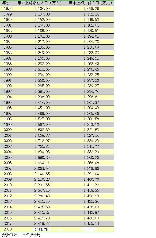 上述公报数据显示,2018年末,上海全市常住人口总数为2423.78万人,比上一年的2418.33万数字增加5.45万,其中2018年全年常住人口出生17.4万人,死亡13万人,常住自然人口增长了4.4万,相比2018年末上海常住人口同比增加5.45万数字, 2018年末上海常住人口净流入1.05万。
