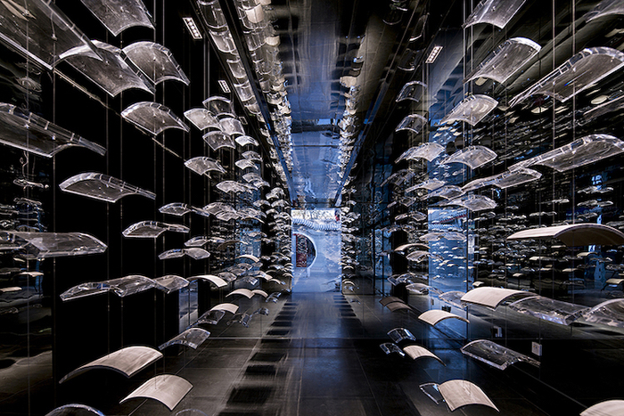 作为北京庭院建筑的核心元素,屋顶瓦片曾经记载着一个时代,却也在今天逐渐被人们淡忘。为了让公众更好地了解胡同建筑的历史,设计者将大量透明瓦片以空间装置的形式悬挂起来,当人们伴随传统音乐穿行在瓦片“搭建”的空间中央,便不难体会到这一材质构建的美妙动线和具有呼吸感的建筑肌理。