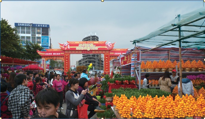 拎着东西走路的人也都不慌不忙,脚下一步比一步扎实。他们拎 着的塑料袋里装满了新鲜的蔬菜,上面还搭着红色的春联或者是一个 “福”字。