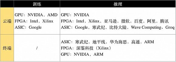 更关键的落地动作体现在AI 芯片公司选择进入的场景。目前市面上 AI 芯片主要分为云端 AI 芯片与终端AI 芯片,两者区别在于,云端AI 芯片部署在大型服务器中,可支持图像、语音等不同类别的AI 应用;终端芯片则被放在音箱、摄像头等硬件设备中,体积小、功耗小,但一般只支持1-2种AI 应用。