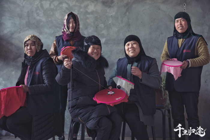 绣娘们起初半信半疑,到后来就争着来参加培训、做工,每月可赚上几百上千。在不富裕的东乡,这是笔不小的收入,有了这笔钱,她们可以买些衣服和化妆品,不用看男人脸色了。聚在一起学技艺、绣产品,绣娘们从当初的不自信,到慢慢在心里燃起一团希望的火。