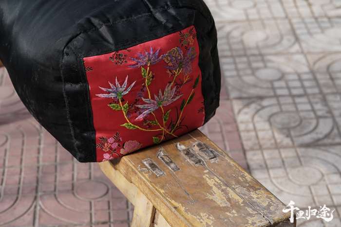 90后东乡女孩马箫箫,家中仍保留着一对太爷爷母亲亲手缝制的“菜瓜枕头”,已有百年历史,形状长而方,周身包裹黑色绸布,一红一蓝帛面上绣着鲜艳的花枝。当年,太爷爷常枕着它办公,后来布面破损换过一次,但花样还是原来的。“相比南方刺绣,我们东乡刺绣的特色就比较粗犷,颜色比较新鲜。”她告诉第一财经。