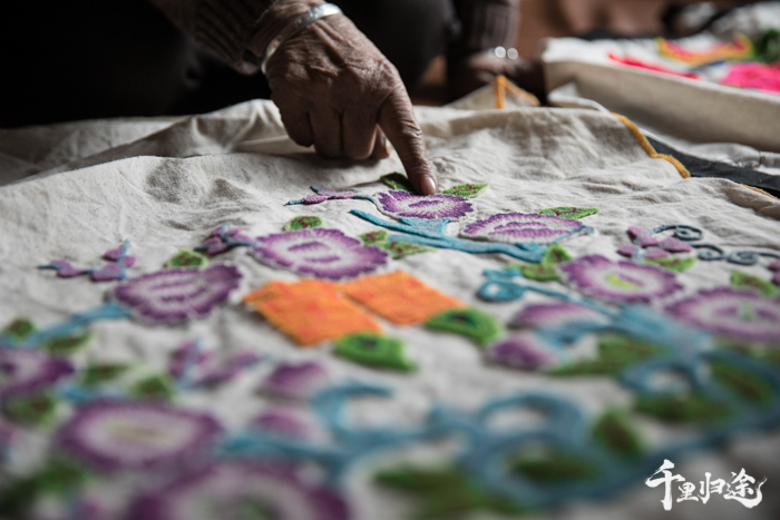 这些不算复杂的花样,马箫箫按件计算,绣娘最少能拿20元。运转一个月后,舀水村越来越多的妇女想要加入,还有从其他乡镇慕名而来的。“我们这里有很多会刺绣的人,只是他们没有机会从家里走出来,接触外面的世界。”