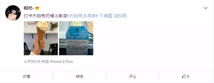根据Wanderlust creamery在Instagram上发布的信息,2月5日,这家美国洛杉矶的冰淇凌公司推出了季节限定款——大白兔奶糖口味的冰淇凌,而且在宣传时并没有回避这款产品与大白兔奶糖的关联——在社交媒体上发布信息时的配图正是一支包裹着大白兔糖纸的冰激凌。