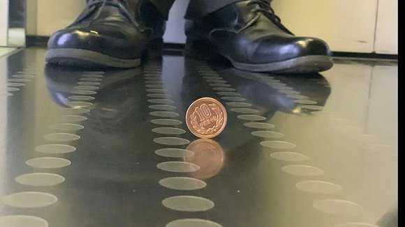 在SOLAÉ电梯试验塔中,高永聪对向界面新闻记者在内的多家媒体演示了著名的硬币试验。在电梯高速运行过程中,他于轿厢地面竖立了一枚10日元硬币,到达指定楼层后也没有倒下。