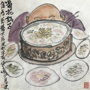 菊花可食用的有白菊、黄菊。白菊以杭州一带所产为好,所谓杭白菊。黄菊是安徽歙县特产,有金丝黄菊之称,好像也是贡品一类。故宫用的是黄菊,配合鸡汤,显得格外黄亮油润。黄菊讲究花朵大的好,我所见黄菊有巴掌大小的。不论黄菊白菊,食用方式都是泡水,能够清热解毒、疏肝明目。味道大家也都喝过,微苦。火锅中加菊花,追求菊花的清苦味道还在其次(汤底用鸡汤而不用清汤,大概也是怕苦味太甚),更多是奔着功效去的。燕地苦寒、干燥,秋冬点上火锅,再涮些肉,难免燥热生痰,菊花正好可以调剂。