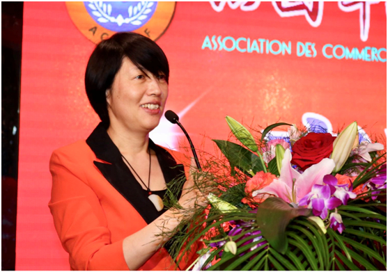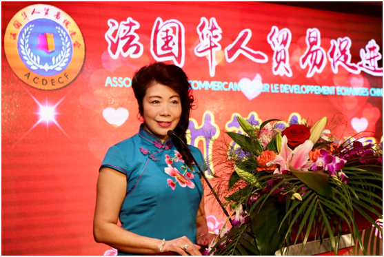 高萍参赞代表中法驻法使馆向在场女士们送上最诚挚的节日祝福和美好的祝愿。她指出,新年伊始,周碎金会长及部分旅法侨领回国参会,为旅法侨胞带回了祖国发展的最新动态。法国华人贸易促进会是以商业为主的协会,成立十年来,在积极维护旅法侨胞的合法利益,支持祖籍国和家乡的发展建设等方面做出了杰出的贡献。