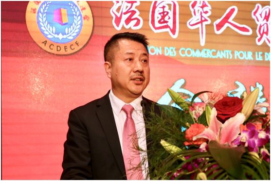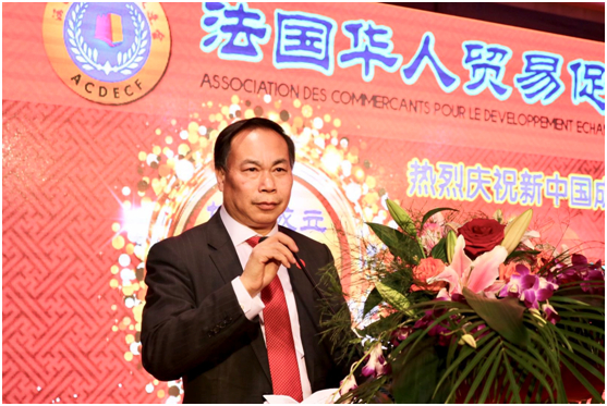 法国华人贸易促进会会长周碎金发表了热情洋溢的致辞。他说,法国华人贸易促进会成立十年来,在第一届第二届会长包志诚、第三届会长温晓光的带领下协会稳步发展, 为中法贸易文化的民间往来做出了积极的贡献。在自己任期当中,协会继续秉承友谊和谐发展公益教育事业的创会宗旨, 团结会员凝心聚力、砥砺前行, 成为旅法侨社的重要社团之一和中坚力量。周碎金代表协会向使馆领导、侨界友人及协会家属长期以来对协会的支持与信任给予衷心的感谢。
