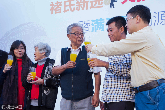 2015年,云南玉溪,褚时健举杯支持褚一斌的“褚氏新选”计划。