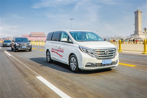 传祺高端车型(GM8、GS8、GS5、GA8)作为新闻采访用车行驶在北京街头