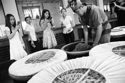 2018年8月11日,在山西太原清徐县,网红主播通过直播的方式体验山西制醋文化。随着“网红直播经济”的兴起,越来越多的传统产业尝试利用网红直播效应,探索土特产品在市场销售上的新模式。东方IC 供图