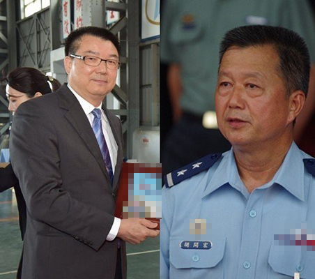 台湾汉翔航空工业公司董事长廖荣鑫(左)即将交棒,换上即将退役的台湾防务部门副参谋总长胡开宏(右)。(图片取自台媒)