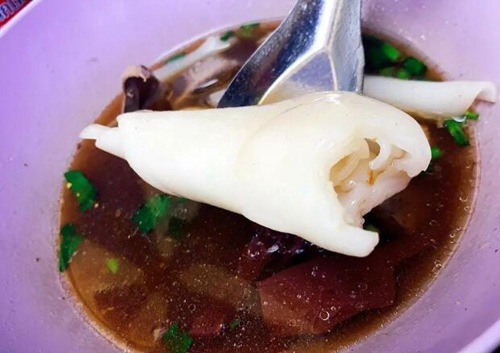 芭提雅的一家老字号叫坤式早餐店,是老潮汕华人中餐厅,在pattya klang 10巷的巷口,那里的鬼抓粉用浓厚的米浆蒸煮粉皮,再人工卷皮,软糯香滑,醇醇米香,入口难忘。连汤水也不同于一般店家的寡淡,用骨头和米浆熬煮的汤底,多了一份粘稠。(陈志昌 永夏城/图文)