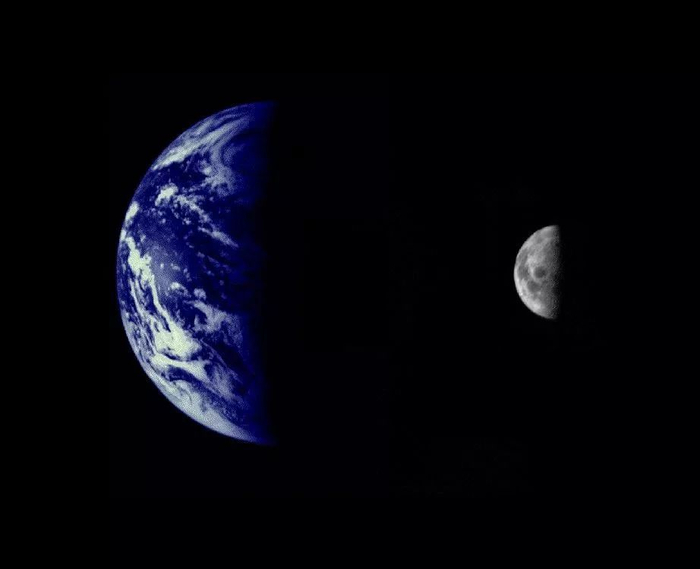 (地月同框照,由水手10号探测器摄得,图片源自@NASA/JPL)▼