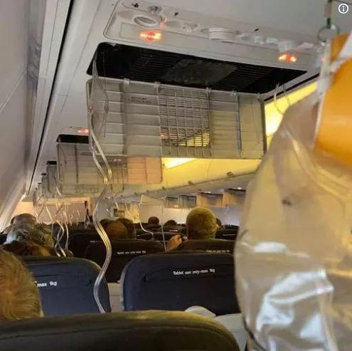 图:澳航客机客舱失压氧气面罩掉落 紧急备降堪培拉 图片来源:推特@Greg Denehy