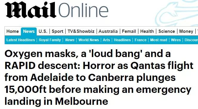 Dailymail:面罩脱落,一声巨响后飞机骤降15, 000英尺,在墨尔本紧急降落。