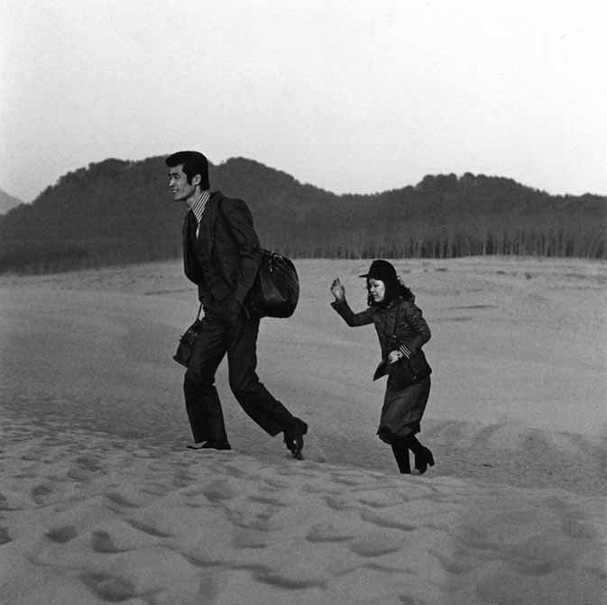 他对着被摄体,一边抛开视觉的断论,一边将它们收进那小小的六乘六箱内,他的妖术,让人产生跨入彼方世界的错觉,微斜的光线,或由正面打出一发闪光,无论如何,他的背景必是阴暗的。然后,他只烧印出光线下的图像,其他人物几乎被他隐藏进漆黑当中,他们像受他双眼所胁迫,步步倒退,消逝在暗黑的空间深处。他的摄影中栖息着妖怪变化,他的摄影妖术将魂魄完全拔除了。——植田正治 他对着被摄体,一边抛开视觉的断论,一边将它们收进那小小的六乘六箱内,他的妖术,让人产生跨入彼方世界的错觉,微斜的光线,或由正面打出一发闪光,无论如何,他的背景必是阴暗的。然后,他只烧印出光线下的图像,其他人物几乎被他隐藏进漆黑当中,他们像受他双眼所胁迫,步步倒退,消逝在暗黑的空间深处。他的摄影中栖息着妖怪变化,他的摄影妖术将魂魄完全拔除了。——植田正治
