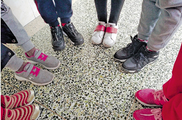 杭州市采荷第二小学六年级语文老师傅利平之前就留意到,班里学生的穿鞋风格出现了“两极分化”,一部分早早穿上了各种运动名牌成人鞋,另一部分却还穿着萌萌哒童鞋。穿童鞋的学生常会向穿成人鞋的学生投去羡慕的目光。