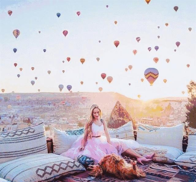 卡帕多奇亚是世界上最壮观的“风化区”,触目所及尽是被“吹残”后的天然石雕。清晨站在千姿百态的石林上看着远处迎着朝霞升起的五彩斑斓的热气球,与自己的相爱的人看到此番浪漫的场景,将会是彼此记忆中最美点缀。