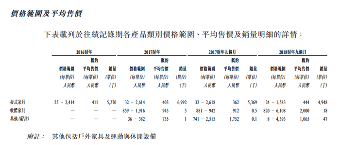 由于原材料涨价、家具出口退税率下调、人工和销售成本增加等各种原因,对其盈利能力产生不利影响,这导致板式家具成品的平均售价有所上升,由2017年前三季度的362元上涨为2018年前三季度的444元。