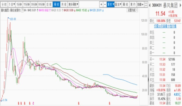 暴风集团周K线图(图片来源:东方财富软件截图)