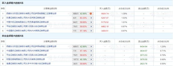 数据显示,买入前五名分别为国泰君安上海分公司、银河证券绍兴营业部、国泰君安顺德东乐路营业部、中泰证券上海建国中路营业部、东北证券杭州信诚路营业部位列最大买入席位,分别买入1.26亿元、1.2亿元、8362万元、7876.39万元以及6931.08万元。卖出前五席位也同样来自非机构席位。