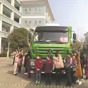 土方车开“进”校园里,学生体验“司机视角”“真看不到这么多人藏在盲区里”